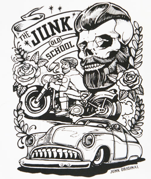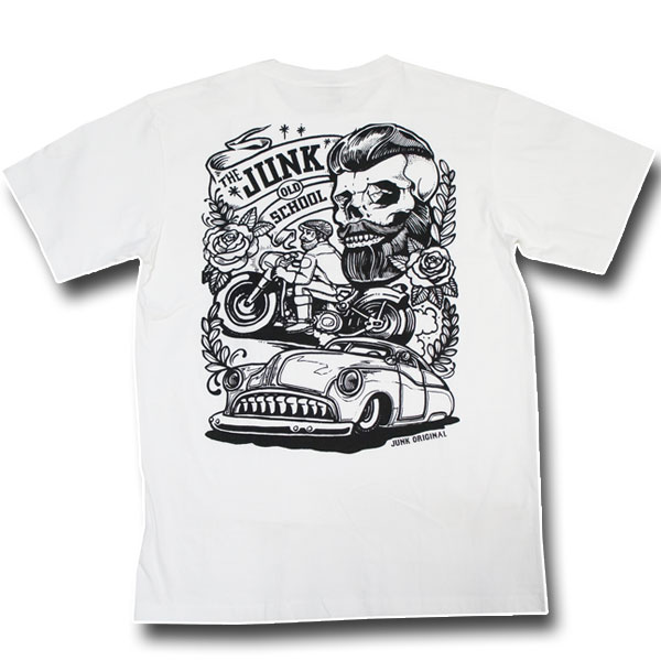 バイカーTシャツ・JUNK OLD SCHOOL・ジャンクオールドスクール(半袖Tシャツ) 【ロック・リーゼントスカル・ロカビリー・オールドスクール・FLH・ハーレー】